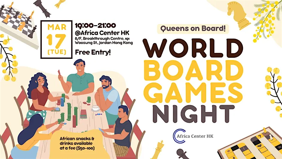 17 Mar (Tue) | 19:00-21:00 Join us for a high-energy night of strategy and community. Whether you are a pro or a beginner, come for the competition and stay for the vibes. Includes: Games, African Food + Drinks.